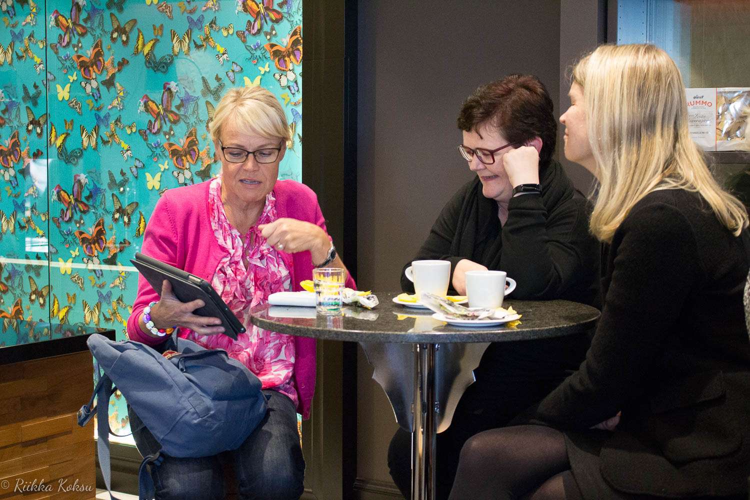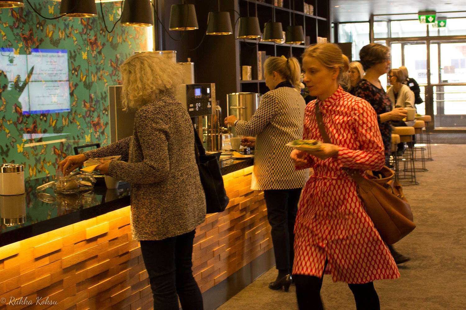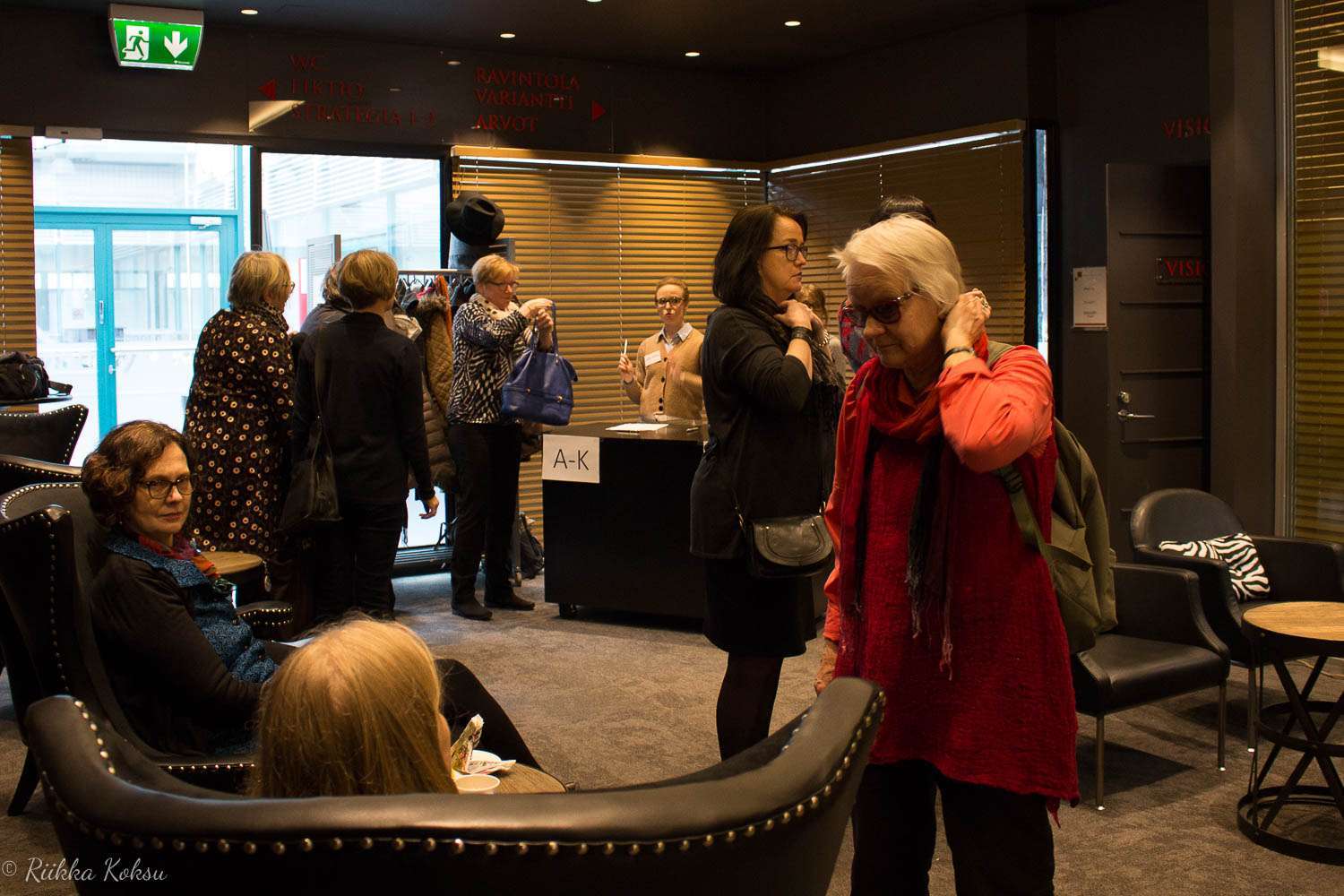 Kun astuin Taitotalon ovesta sisään, vanha työminä hyppäsi pintaan ja hoitelin asiat ”ihan kuin olisin ennenkin tehnyt” -asenteella. Katselin paikat. On muuten komeasti remontoitu tila ja tyylikäs auditorio/lämpiö -yhdistelmä. Juttelin ja kuvasin lämpiössä urakalla. Kerroin opiskelevani valokuvausta vajaan vuoden mittaisella TSL:n valokuvauslinjalla. Muutaman henkilön kanssa puhuttiin myös kuvien julkaisusta – mikä on sallittua ja mikä ei. Huomasin ilokseni latelevani asiat apteekin hyllyltä. Omatoimiopiskelu vuosien mittaan on tuottanut tulosta.