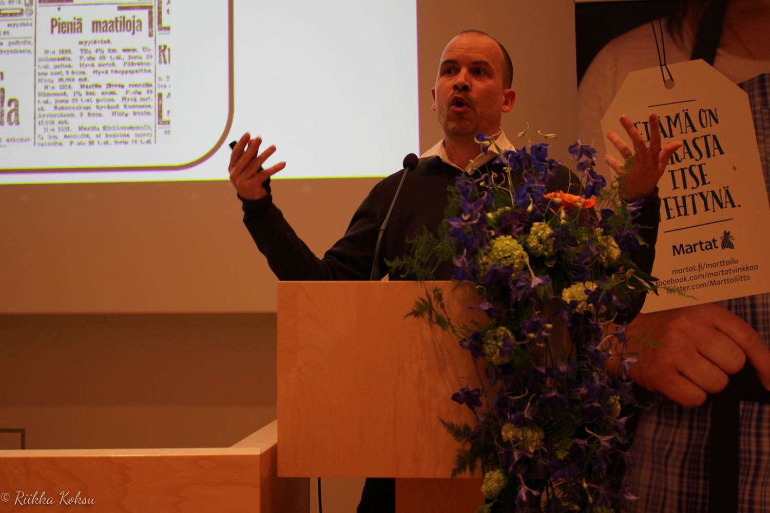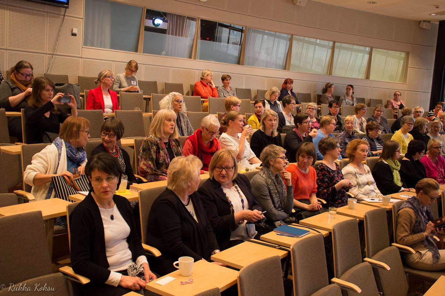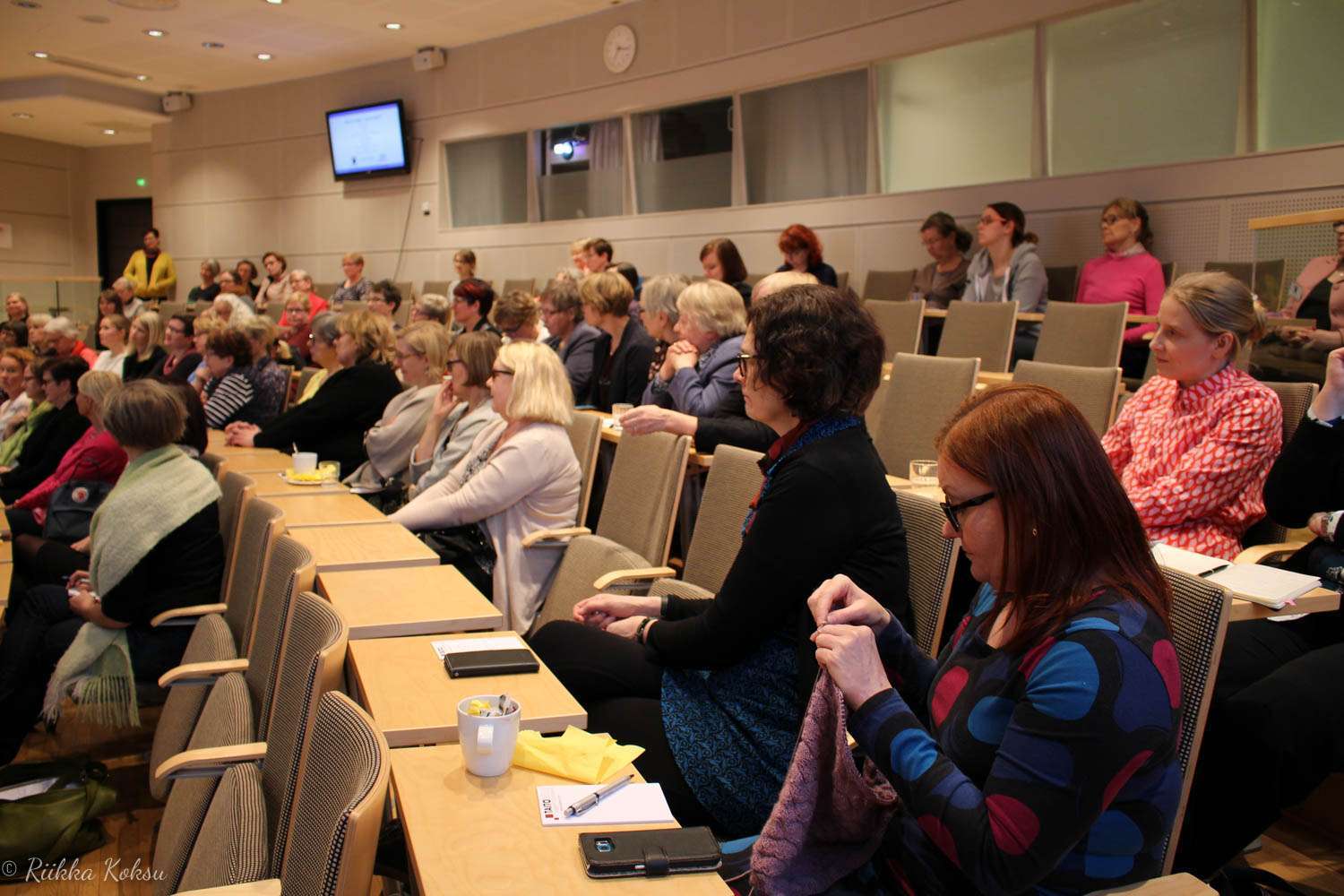 Itse auditoriokuvaus oli pieni painajainen. Jouduin zoomaamaan enemmän kuin olin toivonut eikä valovoima linssissä riittänyt. Kohinaa sen sijaan riitti enemmän kuin pienessä kylässä. Kuvaaminen oli muutenkin haasteellista. En halunnut häiritä liikaa, kun epämääräisesti koikkelehtivaan kuvaajaan kiinnittää helposti huomiota. Kuvasin lopulta kuitenkin auditorion molemmilta laidoilta, takaa ja etupenkistä, jossa tosin pystypöydän ja puhujanpöntön välistä oli kaikkea muuta kuin oivallista löytää hyvä kuvauskohta.